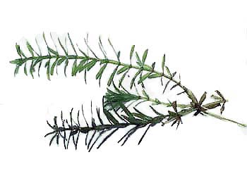 葉の数も違い、クロモは5−6葉ほどが輪生しますが、コカナダモは3枚で葉はそっくり返っています。