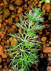 | [ゴマノハグサ科] 熱帯魚屋で学名のリムノフィラの名前で出ていますが、本州以西の水田や湿地に群生する抽水性の多年草です。 水田などで稲の間をよく見ると固まって生えていますので容易に見つけられます。 漢字で「菊藻」と書きますがその名の通り水上の葉は菊の葉に似ています。水の中ではその鮮やかな緑色はひときわ美しく水草水槽では目立つ草です。 |