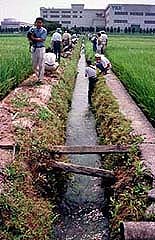 | [ミズハコベ科] 水田や湿地などに生育する多年草です。小さなかわいらしい葉を対生し水面に展開します。固まって叢生していますから結構見応えがあります。写真は黒部市郊外の水田地帯で撮したものですが、かなり流れの速い用水路で川底にへばりついていました。水が増えた直後なのか沈水状態でしたが、まもなく水面に葉を広げるでしょう。(写真右は黒部市・栃沢の湧水用水路) |