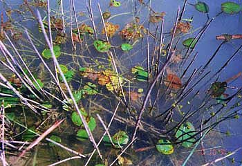 | [オモダカ科] 池や沼、ため池などの浅いところに群生する抽水性の多年草で種子または殖芽で越冬します。種子の発芽率は水温がかなり高ければ良好です。オモダカ科では珍しく浮き葉を持ち、 葉は腎臓形ではっきりした葉脈が見られます。漢字名は丸葉面高。 花後に小さな実をたくさん付けそれとは別に鞘に入った殖芽も多数つきます。 写真右下は殖芽から目覚めたマルバオモダカです。(97.4.13) ほかにオモダカ、サジオモダカ、ヘラオモダカを収録しました。写真左は、96年10月に瀬戸の自生地を実地に観察された奈良の香川氏が撮影したものです。 |
