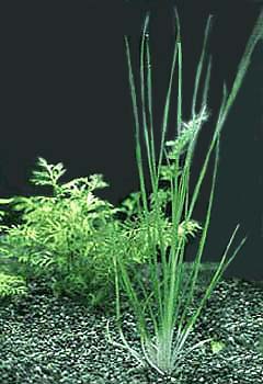 | ミズニラ[ミズニラ科] 名前の通りニラにそっくりです。本州の沼沢地、水田、休耕地、田圃のヘリなどに自生します。自生地では左の写真のように横に広がっていることが多いのですが水槽に入れますと直立して充分鑑賞に堪えます。ミズニラより小さいヒメミズニラが東北地方の月山や八甲田山麓にあるようです。 この水草は、レッドデータブックでは危急種に分類されますが、田圃の畦や休耕田などに大量にあることがあります。漢字で「水韮」と書きます。 ミズニラモドキ 1997年に新種と発表されました(熊本大学)。岡山市の後楽園で初めて観察しましたが、目による観察では通常のミズニラとは区別ができませんでした。 塊茎部の大胞子および小胞子に相違点があるようで顕微鏡による観察が必要とのことです。東北地方の太平洋側、瀬戸内海に面した中国・四国地方に分布しています。 外見上はまったく普通のミズニラですので写真は掲載しませんでした。 |