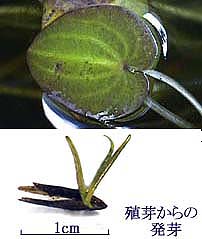 | 池沼や水田などの群生する抽水性の多年草。 丸い浮き葉がある。 | |