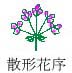| 集散花序 (しゅうさんかじょ) | 花序の花が上から下に向かって順に咲いてくる。または花の中心から外側に向かって順に咲く。 |